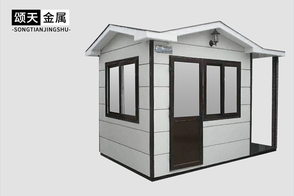 金属雕花板岗亭结构牢固,造型美观。岗亭颜色采用多种搭配方式,可根据实际用途及建筑物风格个性化选择相应的配套设施。活动房表面蒙板采用优质彩色浮雕饰面金属板,产品具有保温隔热、防水阻燃、轻质抗震、施工便捷、隔音降噪、绿色环保、美观耐用等优点,可做为环卫房,值班岗亭等多种用途。