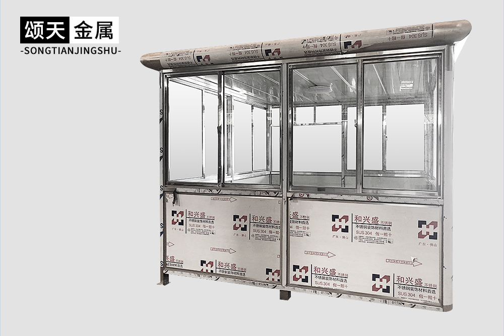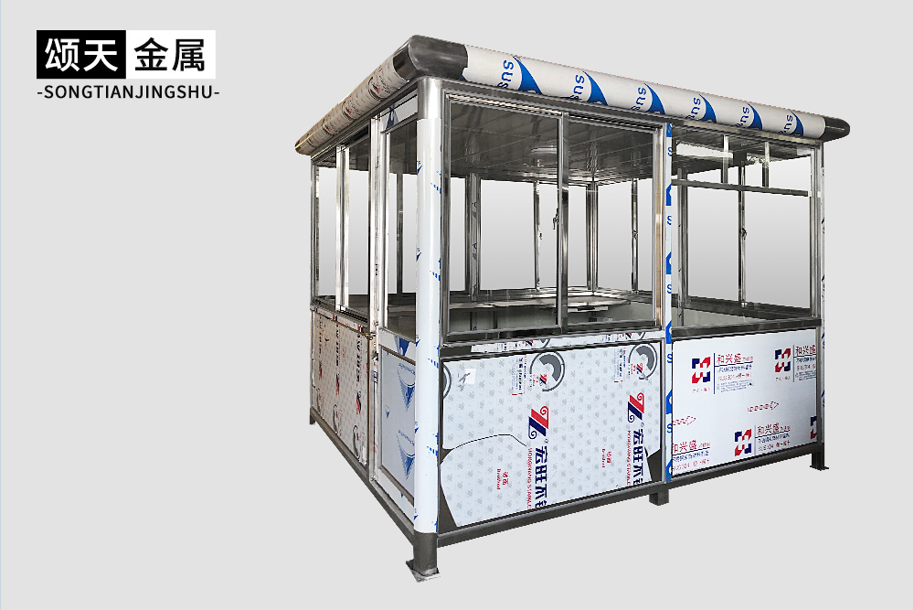 不锈钢保安岗亭适用于小区门口保安执勤、地下停车库收费口、工厂及单位的车辆或人员出入口、停车场车辆出入口等。我们可以根据客户的要求制作平顶岗亭、尖顶岗亭、飘檐岗亭、推拉门岗亭、多层顶等一系列造型款式的岗亭。